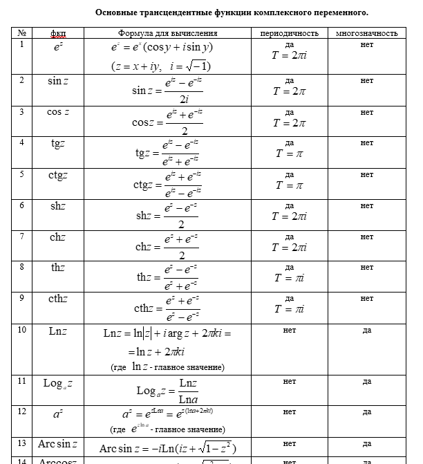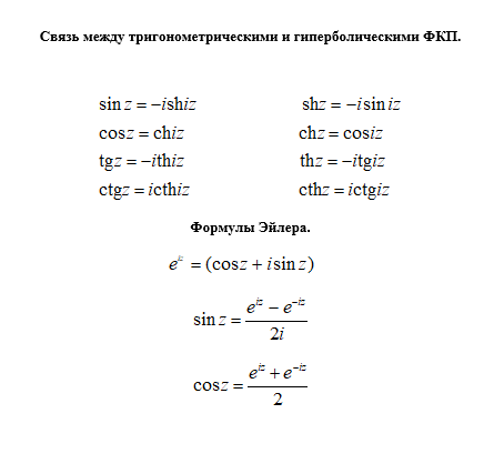 Другое: Основные трансцендентные функции комплексного переменного. Связь между тригонометрическими и гиперболическими ФКП