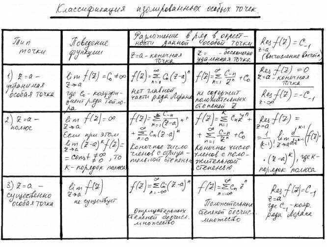 Для студентов МГТУ им. Н.Э.Баумана по предмету Теория функций комплексного переменного (ТФКП)Классификация изолированных особых точекКлассификация изолированных особых точек