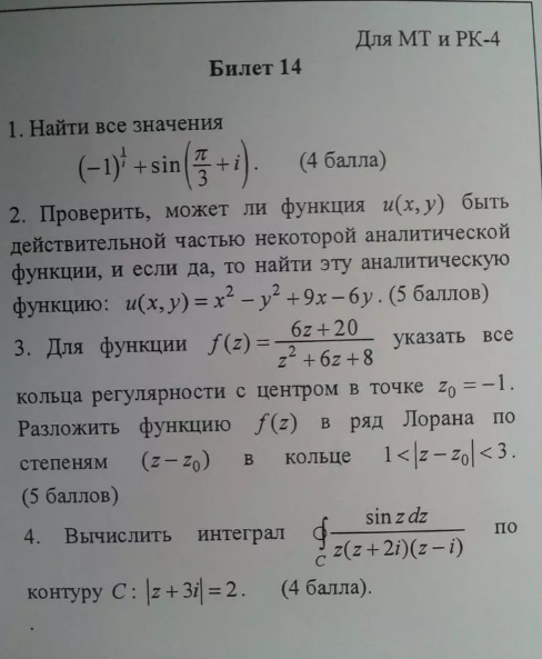 Для студентов МГТУ им. Н.Э.Баумана по предмету Теория функций комплексного переменного (ТФКП)Варианты второго РК. МТВарианты второго РК. МТ