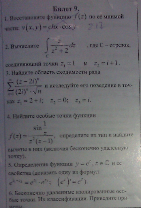 Вопросы/задания к контрольной работе 1: Аттестация ТФКП ( Билеты )