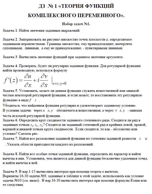Вопросы/задания к заданиям 1: Теория функций комплексного переменного