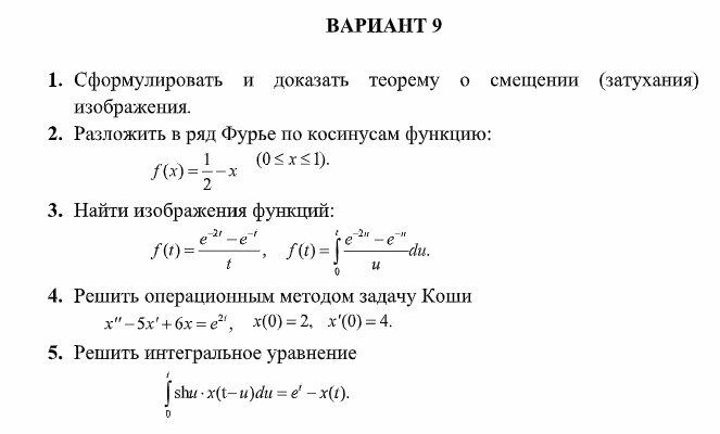 Вопросы/задания к контрольной работе 9: РК ОИ и ряды Фурье. Билет-9. вариант 9