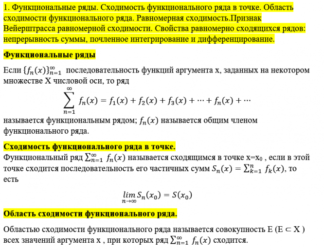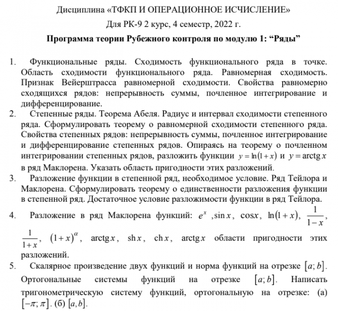 Вопросы/задания к контрольной работе 1: Программа теории ТФКП РК1 Ряды