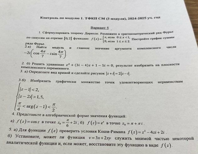 Для студентов МГТУ им. Н.Э.Баумана по предмету Теория функций комплексного переменного (ТФКП)Контрольная работа №1Контрольная работа №1