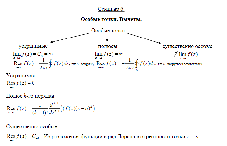 Для студентов МГТУ им. Н.Э.Баумана по предмету Теория функций комплексного переменного (ТФКП)Особые точки. Вычеты.Особые точки. Вычеты.