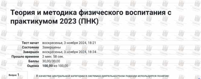 ☀️Ответы на все тесты предмета "Теория и методика физического воспитания с практикумом 2023 (ПНК)" ☀️