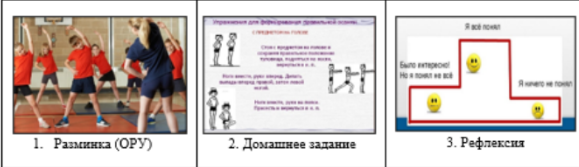 Внимательно рассмотрите предложенные иллюстративные материалы и определите название этапа урока физической культуры, на котором младшие школьники фиксируют новое содержание, изученное на уроке, и организуют самооценку собственной учебной деятельности. В заключительной строке выберите цифрой только один правильный ответ, соответствующий вашему выбору.