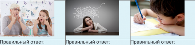 Выберите понятие, которое соответствует определению. отклонения от общих закономерностей, неправильность в развитии и др. несоответствия норме. физический или психический недостаток, вызывающий нарушения в развитии ребенка. биологический процесс появления нового качества, болезненного состояния. Распределите перечисленные нарушения речи на три группы: расстройства звукового оформления высказывания, нарушения структурно-семантического оформления речевого высказывания и нарушения письменной речи. алалия дислексия дизартрия ринолалия афазия заикание дисграфия дислалия Заполните таблицу, приведя в соответствие степень умственной отсталости и ее характеристику. Ответ выберите из выпадающего списка.
