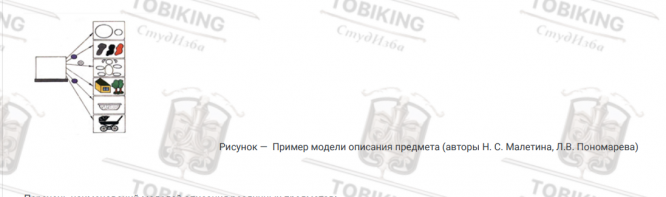 Описание — это модель монологического сообщения, которое выстраивается в виде перечисления одновременных или постоянных признаков предмета. Данная языковая модель имеет определенную цель и структуру, которые отличают описание от других типов монолога. Так, Н. С. Малетина и Л.В. Пономарёва разработали несколько моделей построения описаний различных предметов. Внимательно рассмотрите предложенный рисунок, на котором представлен один из примеров построения модели описания конкретного предмета. Далее выберите из прилагаемого перечня одно верное название изучаемой модели описания. Перечень наименований моделей описания различных предметов: Модель описания овощей и фруктов.
