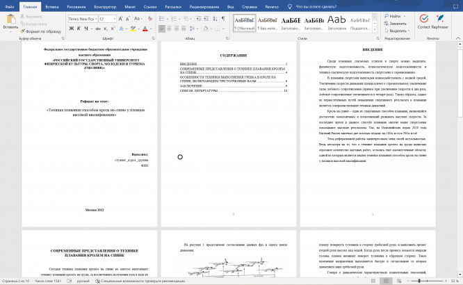 Реферат по Плаванию на тему «Техника плавания способом кроль на спине у пловцов высокой квалификации».