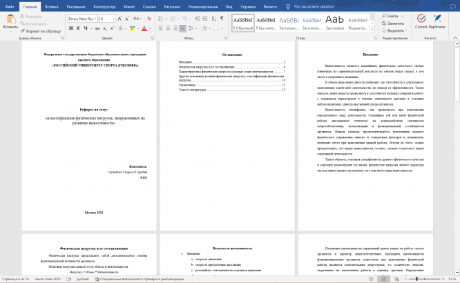 Реферат: «Классификация физических нагрузок, направленных на развитие выносливости»