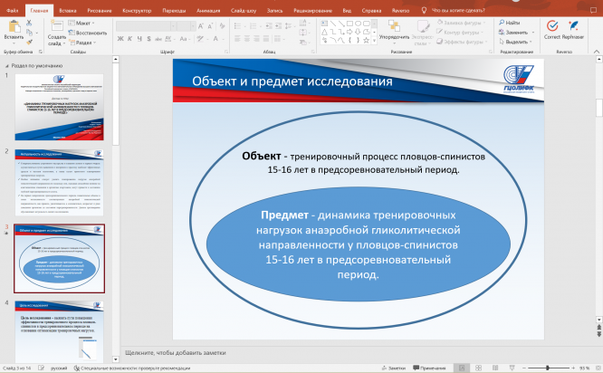 Объект исследования – тренировочный процесс пловцов-спинистов 15-16 лет в предсоревновательный период.