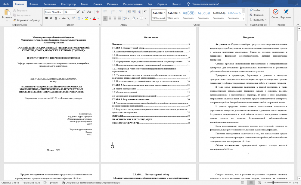 Выпускная квалификационная работа по Направление подготовки 49.03.01 – «Физическая культура» на тему: «РАЗВИТИЕ ФУНКЦИОНАЛЬНОЙ РАБОТОСПОСОБНОСТИ КВАЛИФИЦИРОВАННЫХ ПЛОВЦОВ 16-18 ЛЕТ СРЕДСТВАМИ ГИПОКСИЧЕСКОЙ И ГИПЕРКАМПНИЧЕСКОЙ ТРЕНИРОВКИ».