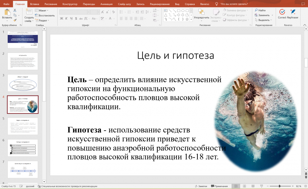 Гипотеза исследования заключается в том, что использование средств искусственной гипоксии приведет к повышению анаэробной работоспособности пловцов высокой квалификации 16-18 лет.