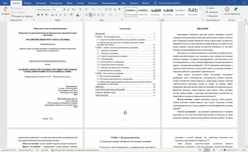 ВКР: Развитие скоростно-силовых способностей пловцов, специализирующихся в плавании на спине