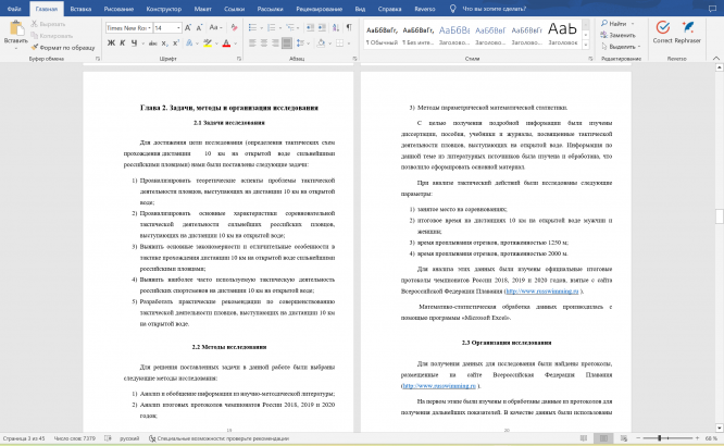 ВКР: Тактика прохождения дистанции 10 км на открытой воде сильнейшими российскими пловцами