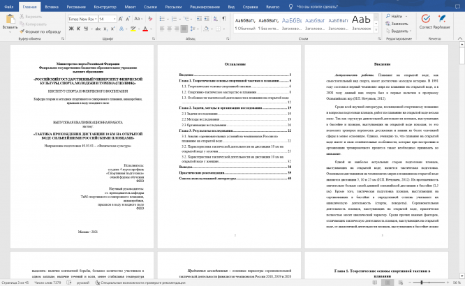 Выпускная квалификационная работа по Направление подготовки 49.03.01 – «Физическая культура» на тему: «ТАКТИКА ПРОХОЖДЕНИЯ ДИСТАНЦИИ 10 КМ НА ОТКРЫТОЙ ВОДЕ СИЛЬНЕЙШИМИ РОССИЙСКИМИ ПЛОВЦАМИ».
