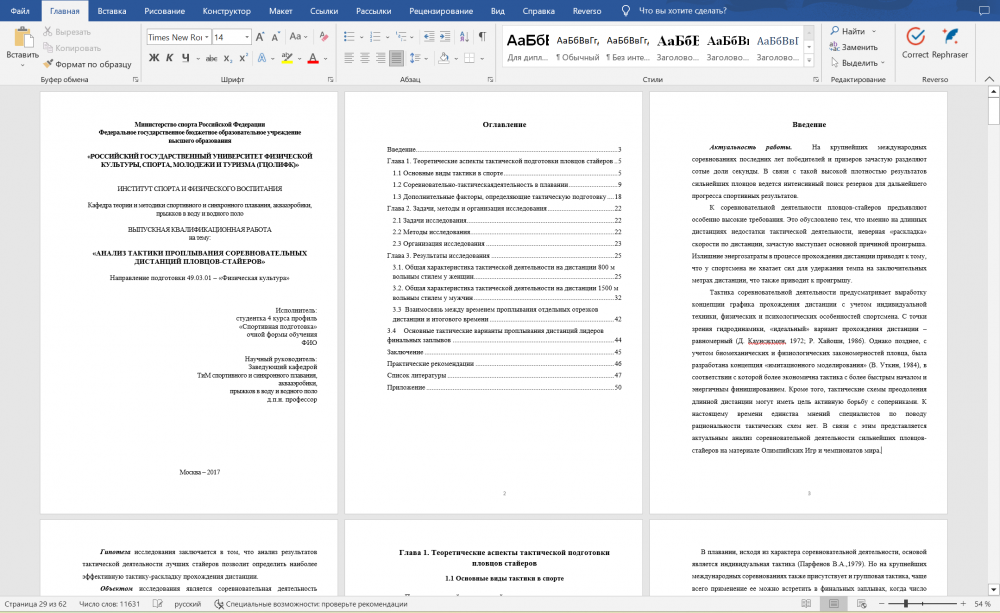 ВКР: Анализ тактики проплывания соревновательных дистанций пловцов-стайеров
