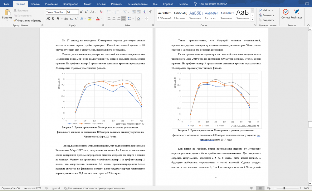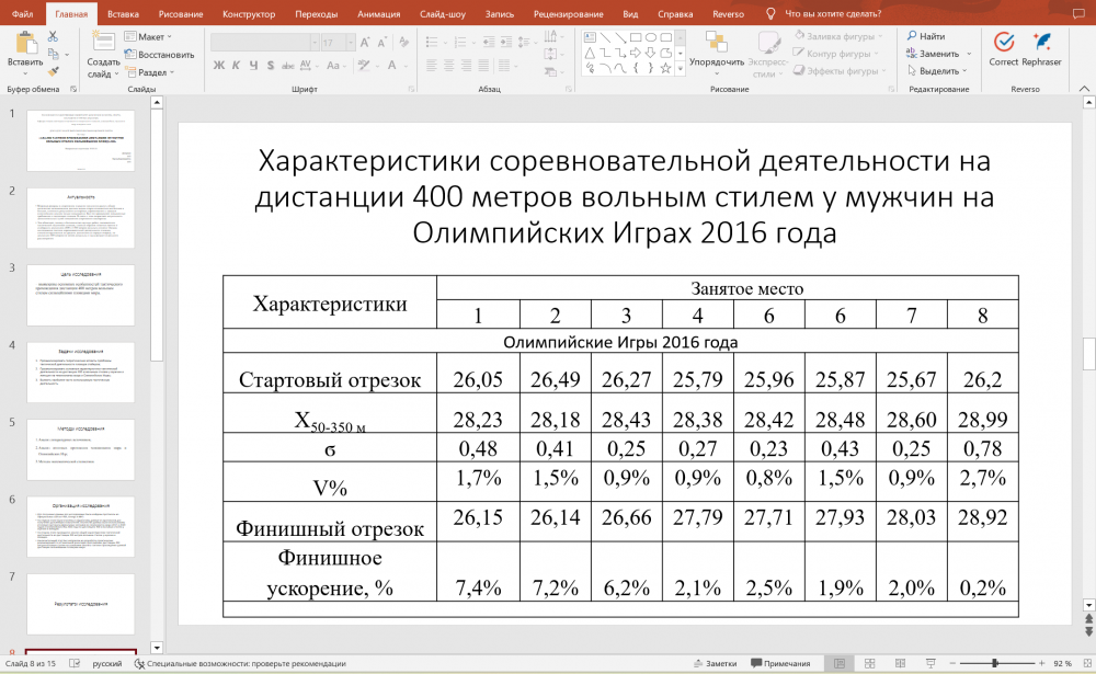 ВКР: Анализ тактики прохождения дистанции 400 метров вольным стилем сильнейшими пловцами