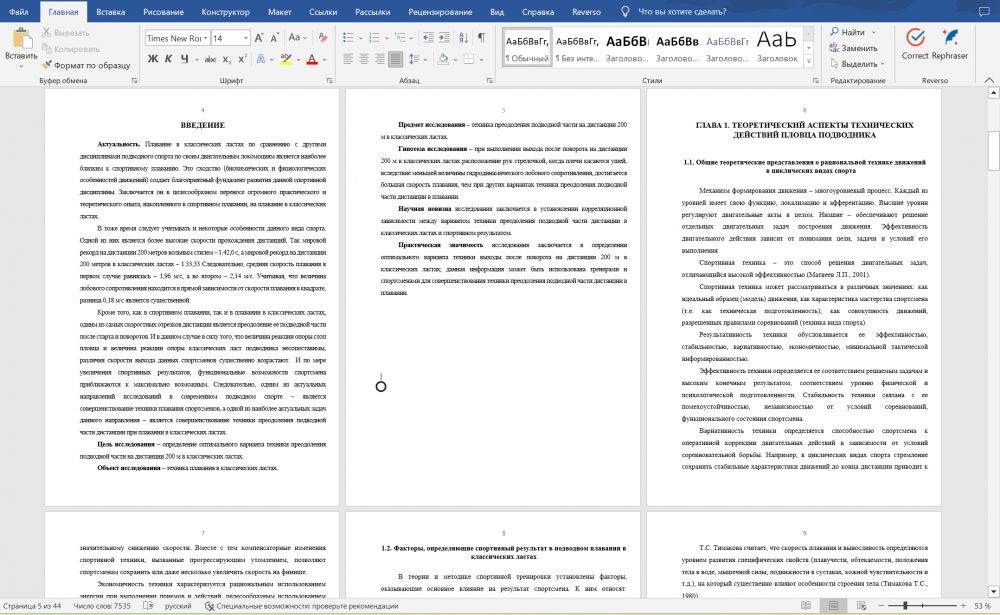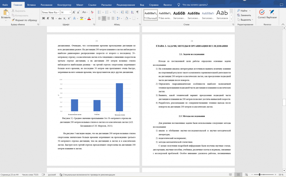 ВКР: Совершенствование техники выхода после поворота на дистанции 200 метров в классических ластах