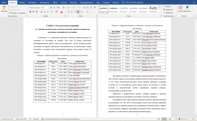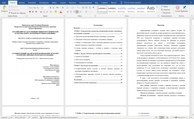 Выпускная квалификационная работа по Направление подготовки 49.03.01 – «Физическая культура» на тему: «СРАВНИТЕЛЬНЫЙ АНАЛИЗ И ПРОГНОЗИРОВАНИЕ МУЖСКИХ И ЖЕНСКИХ МИРОВЫХ РЕКОРДОВ В ПЛАВАНИИ ».