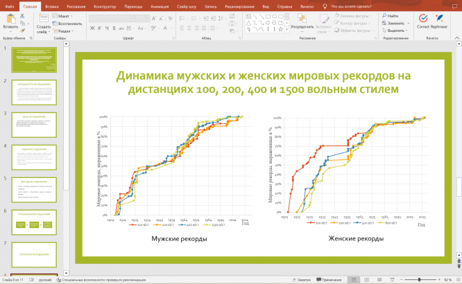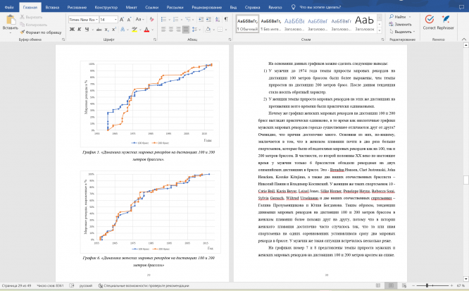 ВКР: Сравнительный анализ и прогнозирование мужских и женских мировых рекордов в плавании
