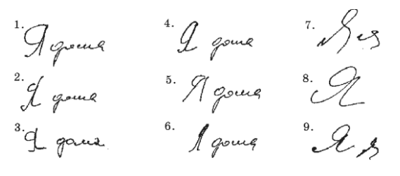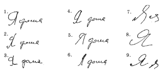 На рисунке ниже приведены различные образцы почерков. Какие из них характеризуют автора как человека амбициозного, общительного?