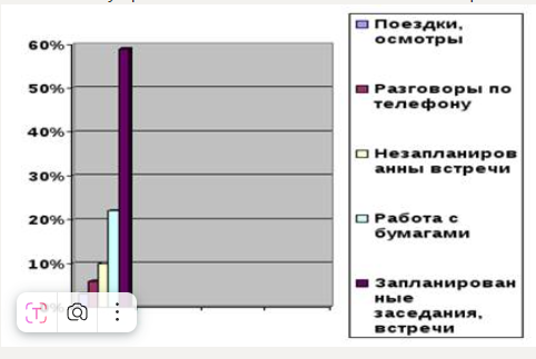На диаграмме ниже показано, как современные руководители расходуют свое рабочее время. Сделайте выводы о ключевых управленческих компетенциях, которые следует включать в модель менеджера. Тип ответа: Одиночный выбор