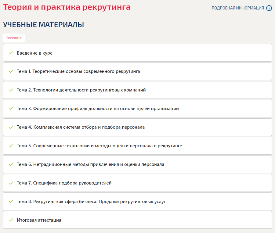 Ответы к зачёту Темы 1-8: Теория и практика рекрутинга вариант Итоговый тест