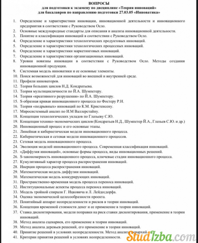 Для студентов МГТУ им. Н.Э.Баумана по предмету Теория инновацийЭкзамен - ОтветыЭкзамен - Ответы