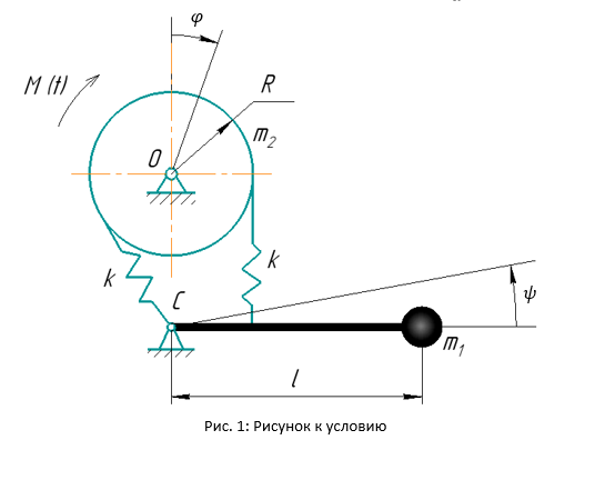 1. Составить дифференциальные уравнения, описывающие малые колебания системы (рис. 1), возбуждаемые заданными силами или кинематически.