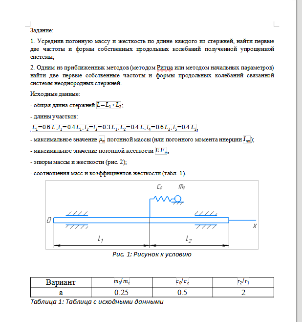 Для студентов МГТУ им. Н.Э.Баумана по предмету Теория колебанийСистема двух неоднородных стержнейСистема двух неоднородных стержней
