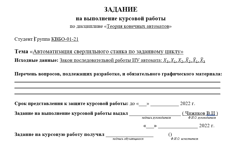 Для студентов РТУ МИРЭА по предмету Теория конечных автоматовАвтоматизация сверлильного станка по заданному циклуАвтоматизация сверлильного станка по заданному циклу