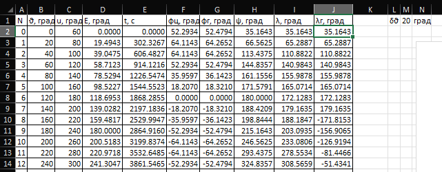 ДЗ 1: Построение трассы спутника (универсальный эксель)