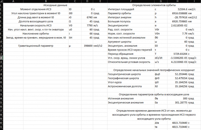 Для студентов МГТУ им. Н.Э.Баумана по предмету Теория космического полетаПостроение трассы спутника (универсальный эксель)Построение трассы спутника (универсальный эксель)