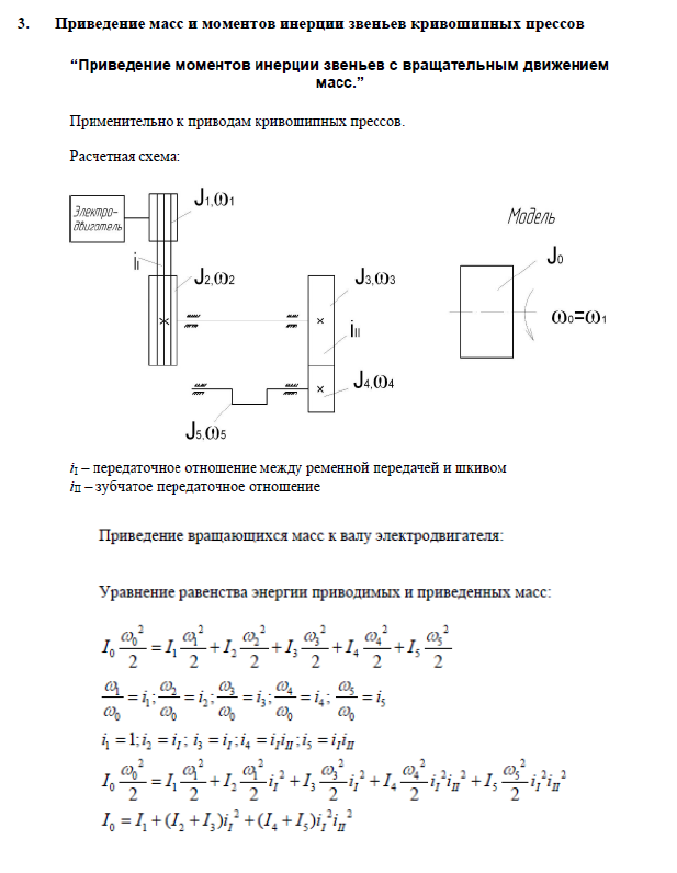 3. Приведение масс и моментов инерции звеньев кривошипных прессов