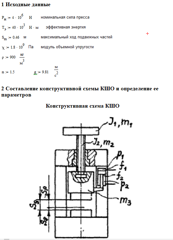 2. Составление конструктивной схемы КШО в определение параметров. Принимаемые в расчете допущения. Расчет параметров схемы