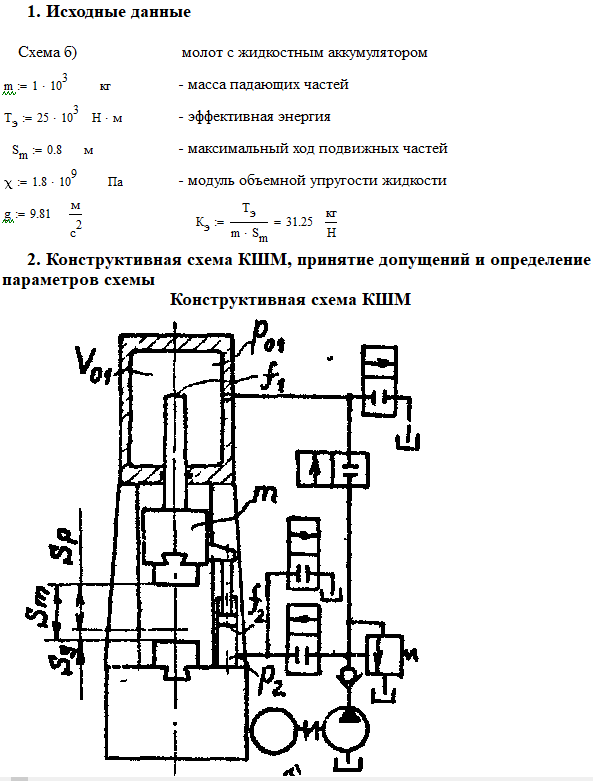 2. Составление конструктивной схемы КШО в определение параметров. Принимаемые в расчете допущения. Расчет параметров схемы