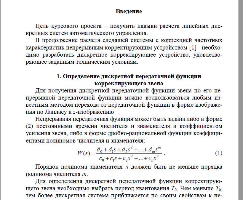В продолжение расчета следящей системы с коррекцией частотных характеристик непрерывным корректирующим устройством необходимо разработать дискретное корректирующее устройство, удовлетворяющее заданным техническим условиям.