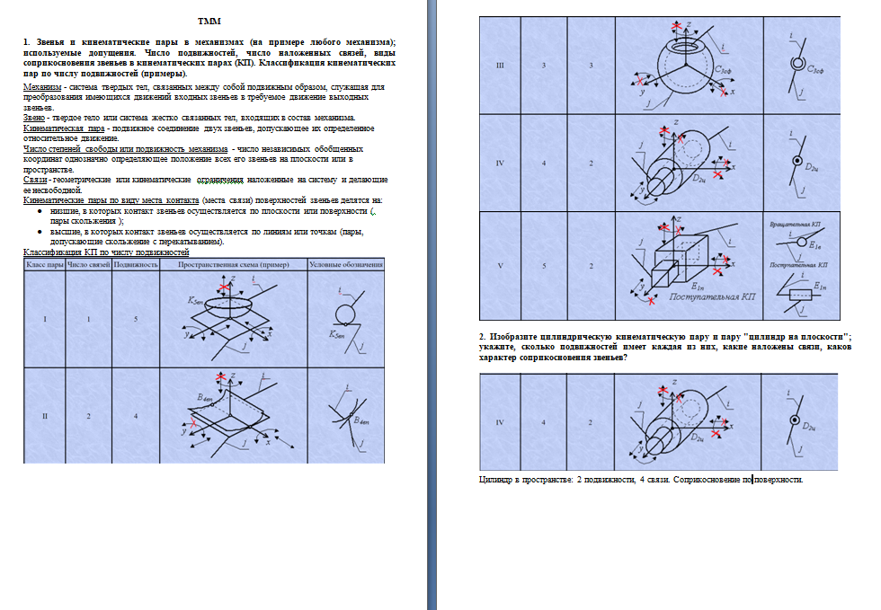 • 2. Изобразите цилиндрическую кинематическую пару и пару "цилиндр на плоскости"; укажите, сколько подвижностей имеет каждая из них, какие наложены связи, каков характер соприкосновения звеньев?