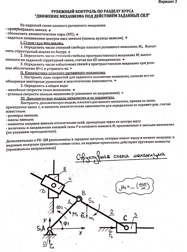 Ответы к контрольной работе: Теория механизмов и машин вариант 2