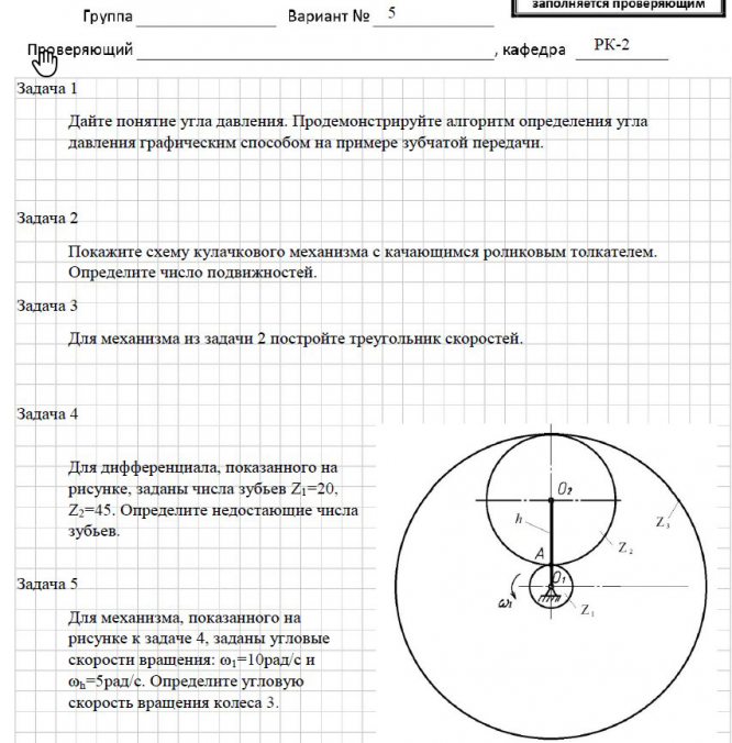 Для студентов МГТУ им. Н.Э.Баумана по предмету Теория механизмов и машин (ТММ)РК-3 5-ВариантРК-3 5-Вариант