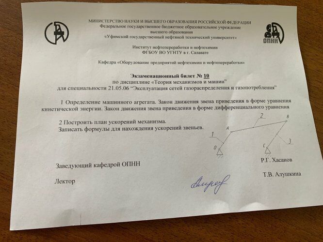 Для студентов УГНТУ по предмету Теория механизмов и машин (ТММ)Экзаменационный билет № 10 - РешениеЭкзаменационный билет № 10 - Решение