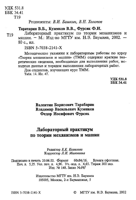 Для студентов МГТУ им. Н.Э.Баумана по предмету Теория механизмов и машин (ТММ)МУ к Лабораторным работамМУ к Лабораторным работам 2019-01-13СтудИзба