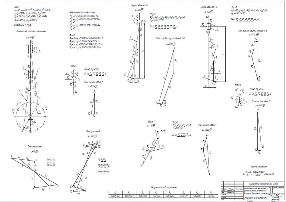 - 3.1. Исходные данные для силового расчёта механизма 18