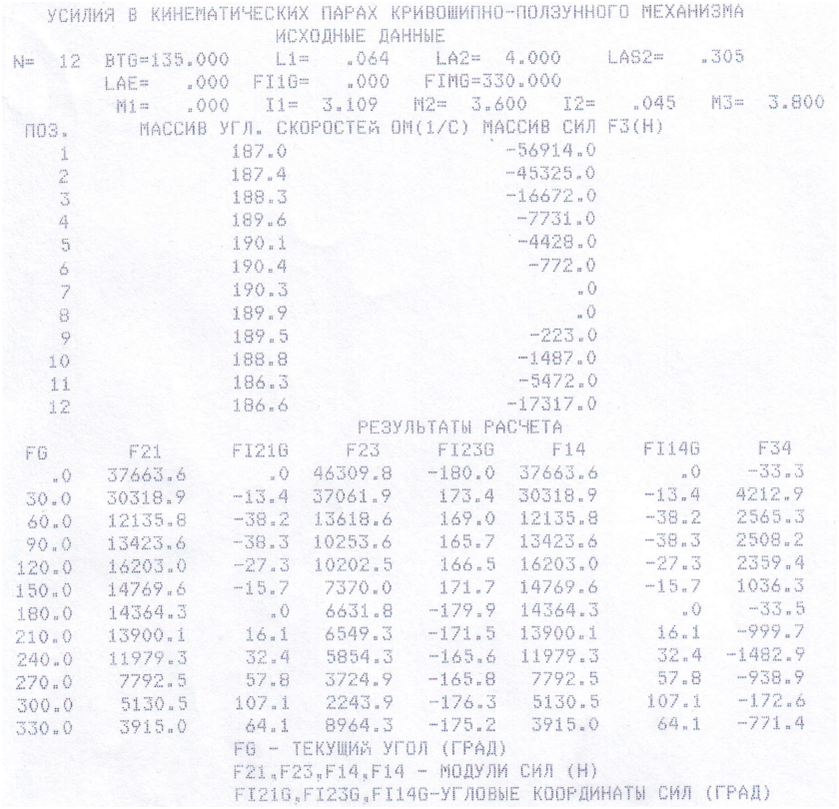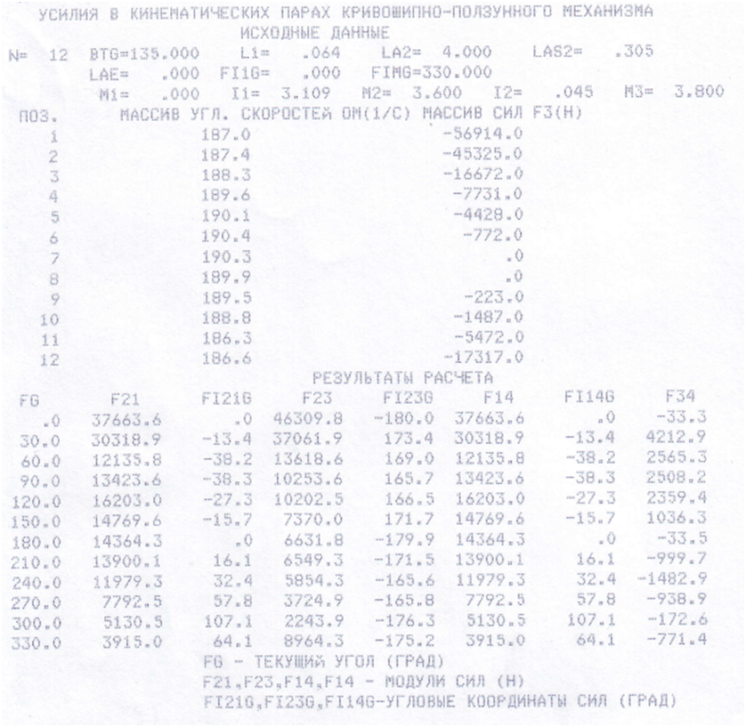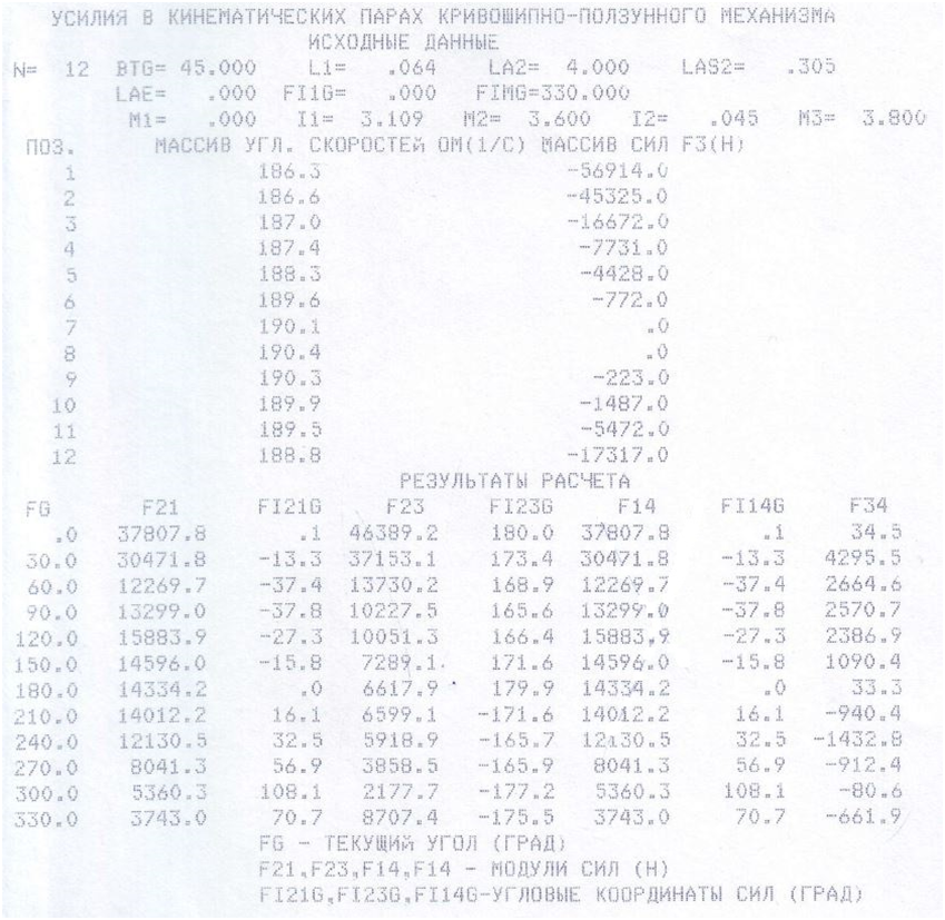 13 | Угловая координата кривошипа для силового расчета (угол ВОА, рис. 13-2а) | j1 | Град | 30 |
