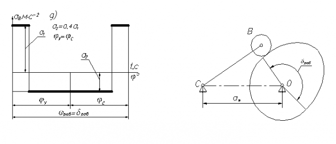 В механизмах управления рулевой машины отсутствует кулачковый механизм, проектирование которого провести по дополнительному заданию (рис.1д). На (рис.1д) приведен график изменения ускорения толкателя от угла поворота кулачка.