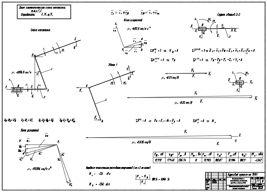 - 2.5. Кинетостатический силовой расчет механизма аналитическим методом