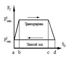График изменения сил сопротивления FC(SD), где SD - перемещение звена 5, при сталкивании и на холостом ходу показан на рис 1.1. При проектировании кулачкового механизма необходимо обеспечить заданный закон изменения ускорения толкателя S"10(φ9). При проектировании и исследовании механизмов транспортера считать известными параметры, приведённые в исходных данных.