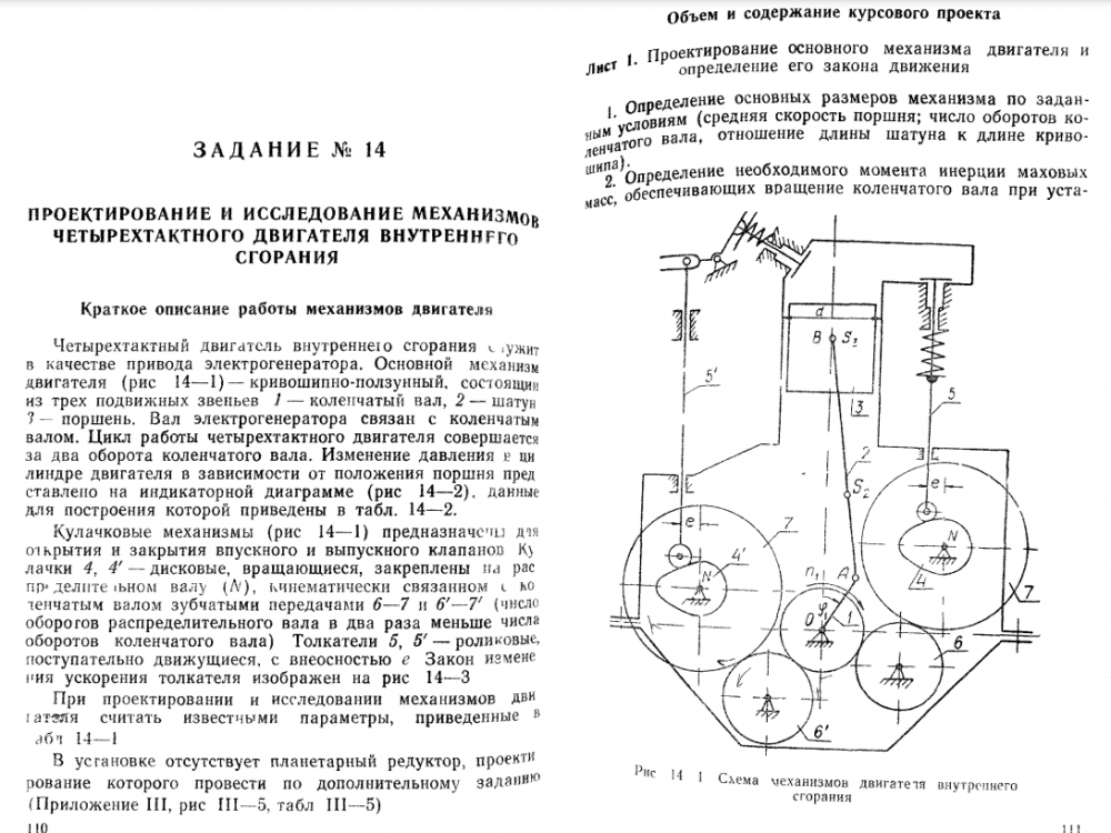 Курсовая работа 14: Проектирование и исследование механизмов четырехтактного двигателя внутреннего сгорания вариант А